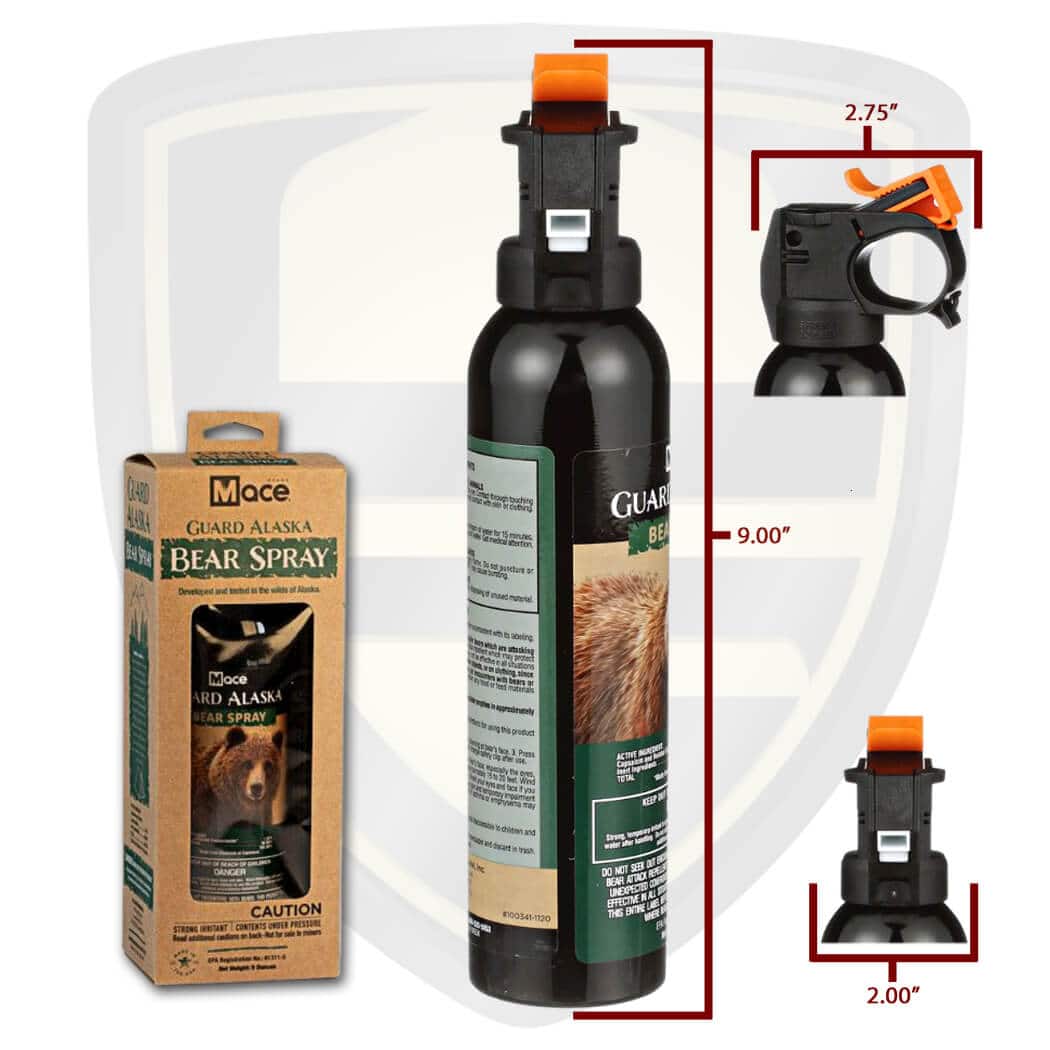 Are you an outdoor enthusiast, seeking to protect yourself and your loved ones from potential bear attacks while enjoying outdoor adventures? Guard Alaska Bear Mace Spray is the answer! Made in the USA by Mace, this essential product can prevent injury caused by potential encounters with bears. Ideal for camping, hiking, hunting, and fishing in areas where there is a bear population – The Guard Alaska Bear Spray repellent has you covered. The Mace Bear Spray is the perfect deterrent for dangerous wildlife encounters. With a spray range of up to 20 feet, the fogger design nozzle empties the entire can in 9 seconds – giving you less time to worry about an unwanted bear encounter and more time to enjoy nature’s wonders. The repellent formula consists of 20% OC capsaicinoids, giving it maximum stopping power and protection from aggressive bears. It is best to use the mace bear spray in short bursts spray to maximize your protection and get the wild animal or bear to redirect their aggression and decide to leave you alone. If needed you can use the US patent design fire master nozzle to empty the entire nine-ounce canister within a few seconds if it is required. Guard Alaska Bear Mace Spray is the top choice for bear repellent. It’s the ultimate defense against bears in the wild while on a hike, camping, fishing, biking, bird watching, etc. The bear mace brand is EPA approved and uses regulated Oleoresin Capsicum (OC) Bear Safe Formula is derived from hot peppers, providing a natural ingredient to ward off unwelcome animals. When deployed, this powerful spray causes the membranes of the eyes, nose, and lungs of a bear to inflame rapidly. This powerful effect helps ensure that aggressive bears are deterred from entering your area – giving you peace of mind in even the most dangerous situations.