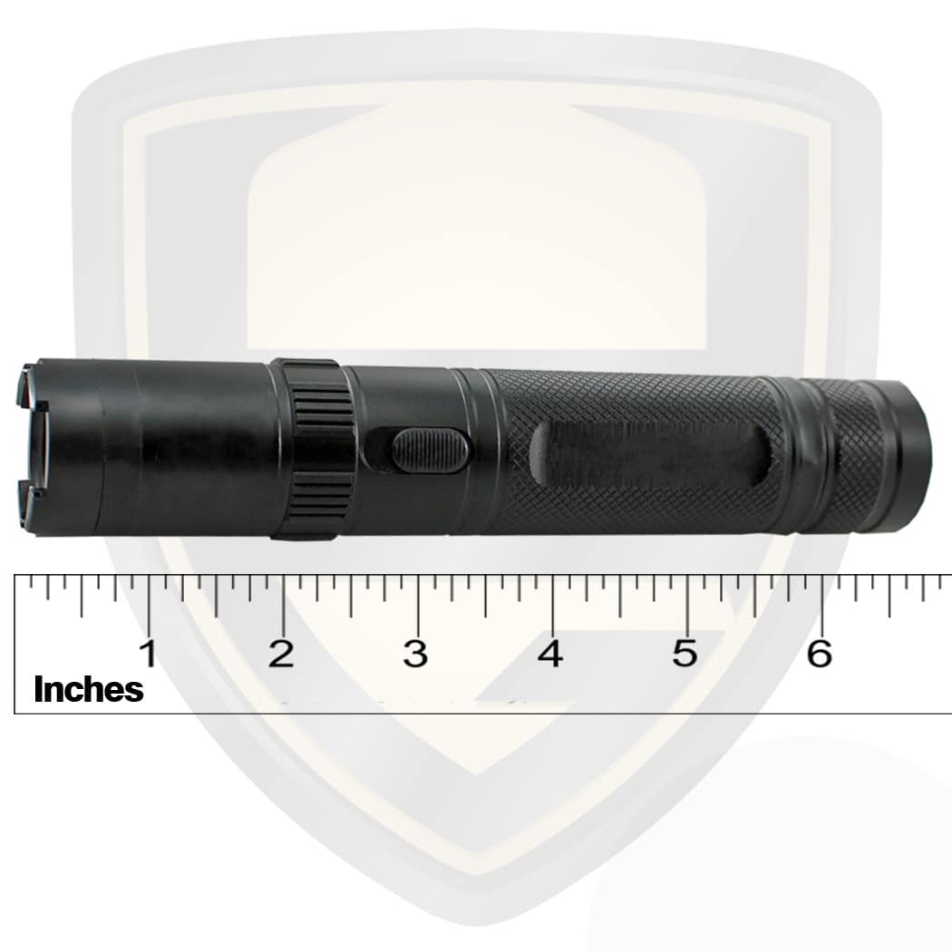 - Stun Gun Flashlight Size: 6.75″ In Length x Bezel 1.20”x Handle Grip Area 1.20″ In Circumference