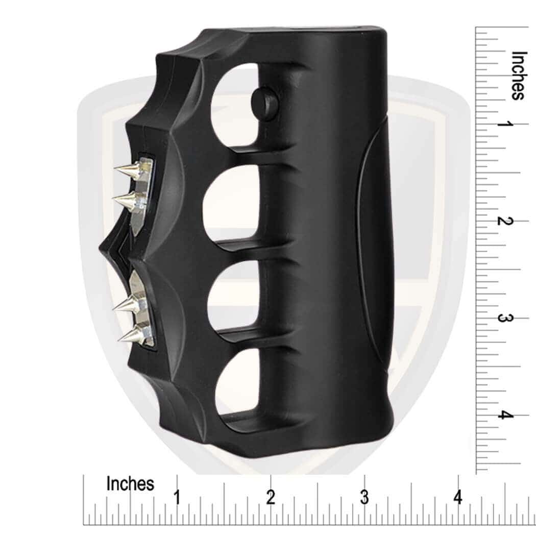 IMPRESSIVE: The extreme stun spiked knuckles by PS Products is a heavy duty construction and offers dependability. The small lightweight design that measures in at 4.25” x 3.25”x 1”and weighs only 5oz. The upgraded sharp metal spiked stun probes offer an additional layer of protection, along with the ability to penetrate clothing for maximum stopping power. A premium carry case holster with metal belt clip is included.
