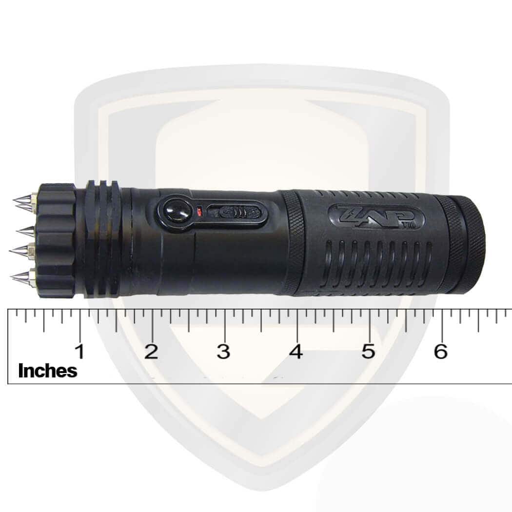 POWERFUL: The ZAP stun gun flashlight offers a consistent measured voltage output of 1,000,000 volts; the current delivers the maximum power allowed by law as a non-lethal shock weapon at 4mA. The zap light extreme stun flashlight is one of the few model stun guns that are US patent design and PS Products is the leading brand in less lethal stun device industry. The zap stun gun flashlight extreme model has 6 ultra-sharp metal spike electrodes to be used a weapon or penetrating clothing for maximum stopping power.