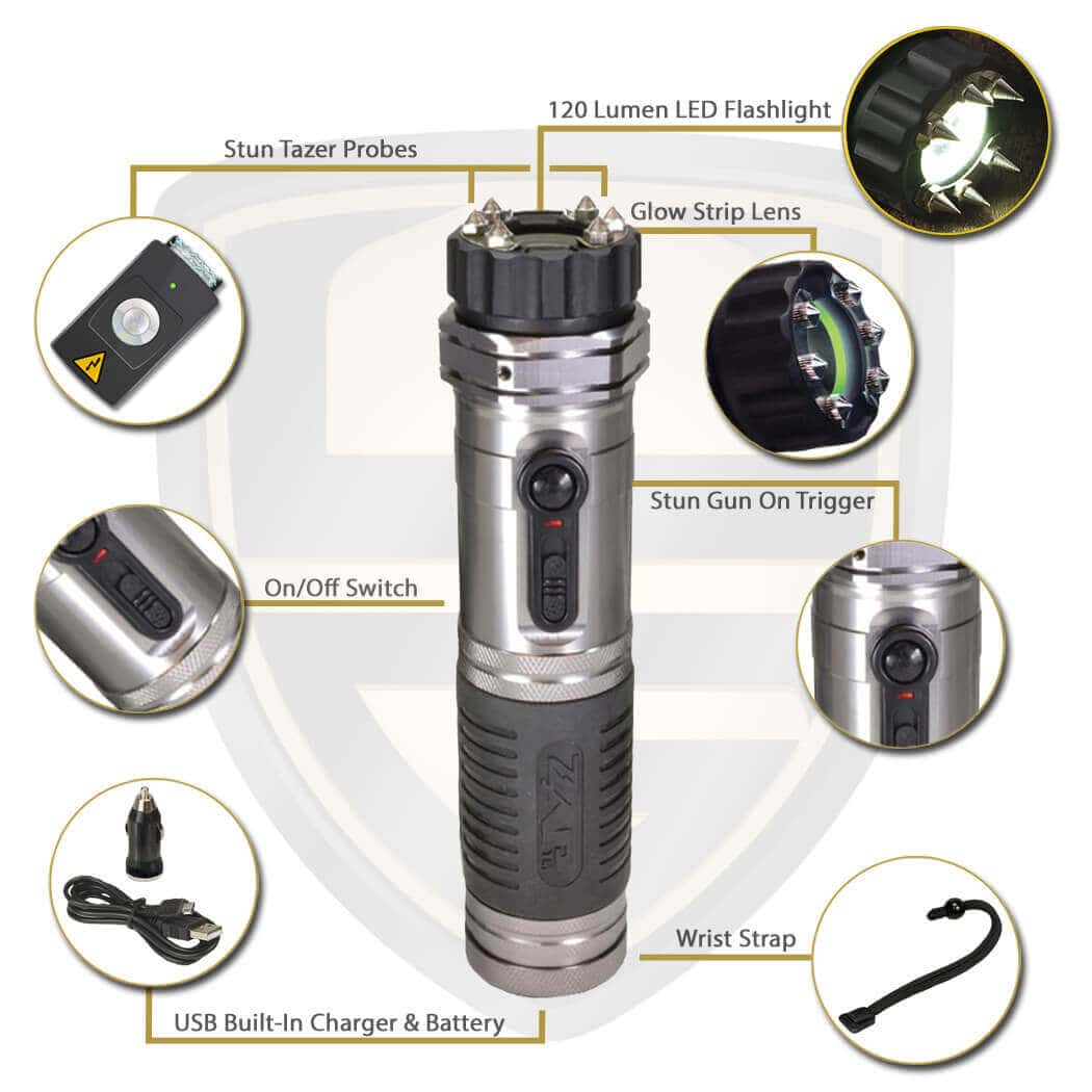 VERSATILE: The zap light stun flashlight is moderate in size at only 6.5” long and weighs 9oz. The ZAP light stun gun flashlight model ZAPL is a professional grade police flashlight stun gun designed for professional use and built to last. This model is rechargeable, and you get two safety products in one with the zap flashlight stun gun model. You have a high volt stun gun, and premium 100,000-hour life bulb flashlight. The USB smart charger prevents over charging with the internal indicator that charges the Ni-MH rechargeable battery.